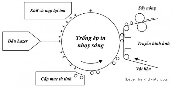 Máy in laser làm việc như là một máy photocopy (Hình 4), nó điều khiển các dòng ion ghi lên bề mặt trống in, kết quả là những phần tử in được tích điện. Những phần tử tích điện này sau đó hút mực lên bề mặt trống. Cuối cùng chúng được truyền lên bề mặt giấy nhờ lực ép và sức nóng.